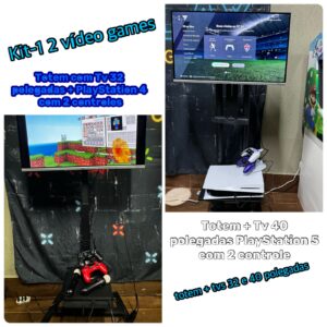 Locação, kit-4, 6 vídeo games, 3 Play 4, 1 Play 5 e 2 Xbox one S + totens + Tvs